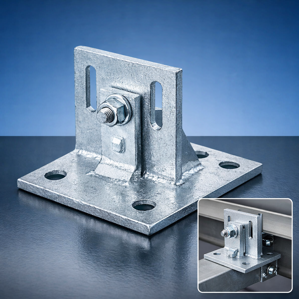 Galvanized steel mounting bracket for industrial structural fixing,Used for fixing and supporting industrial equipment and metal structures during installation.