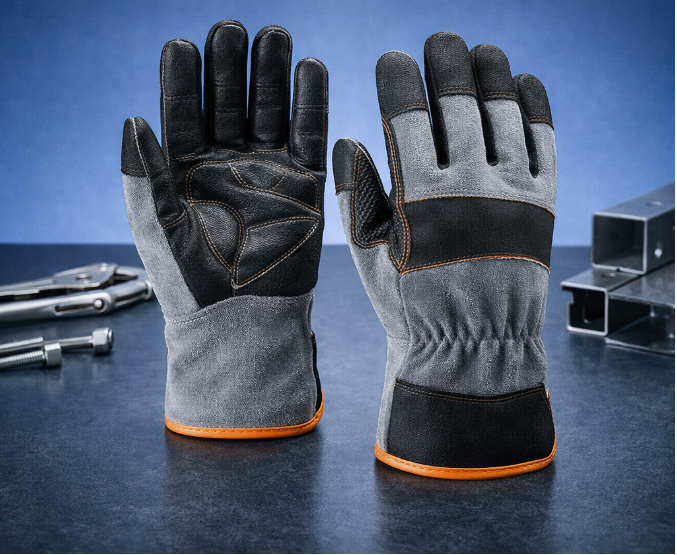Protective gloves designed for industrial metalworking and installation operations,Used to protect hands during metalworking and industrial installation processes.