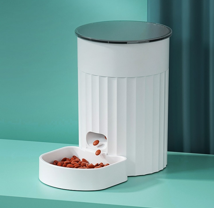 White color;3L large capacity; transparent food container; moisture-proof and freshness-locking design;It dispenses food accurately and can hold up to 3 kg of pet food; lasting 18 days on self-feeding;Compatible with dry pet food ranging from 5-12mm in size;It features a 10-second voice recording function to announce meal times;Dimensions: 168mm * 296mm * 290mm;Power input: DC5V/1A or 3 AA alkaline dry batteries.
