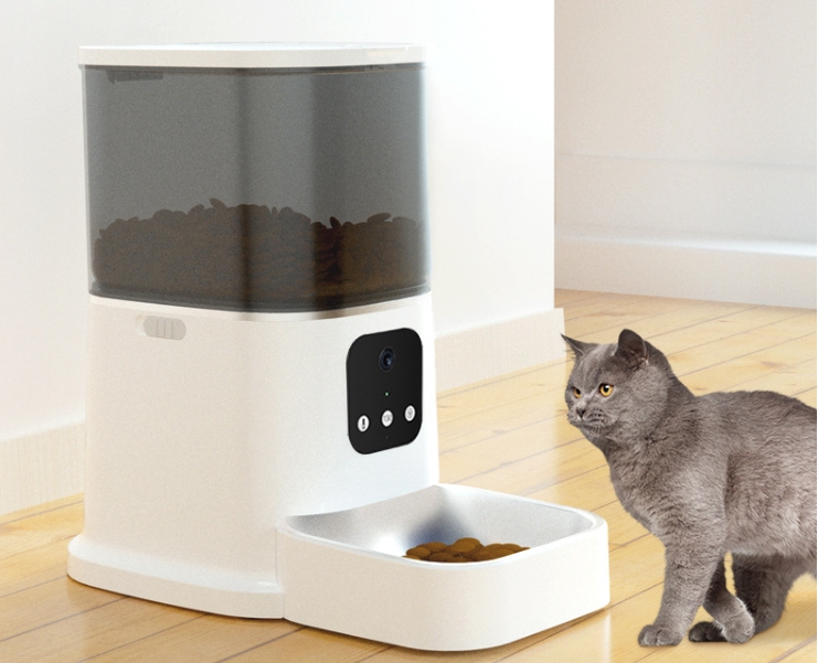 8L extra-large capacity with dual food bowls; HD camera with night vision; dual-band connectivity for stable, uninterrupted connection; 60m large food outlet; quick-detach for easy cleaning; dimensions: 170mm320mm395mm.